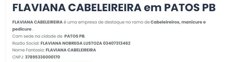 Curioso, o editor do blog foi em busca de mais informações, e verificou que Flaviana atua no ramo de cabeleireiro, manicure e pedicure, com CNPJ 37895336000170, e estabelecimento comercial instalado no município de Pato, na Paraíba. No entanto, a nota fiscal gerada pela contratação da pesquisa, diz que a cabeleireira mora em Bacabal.