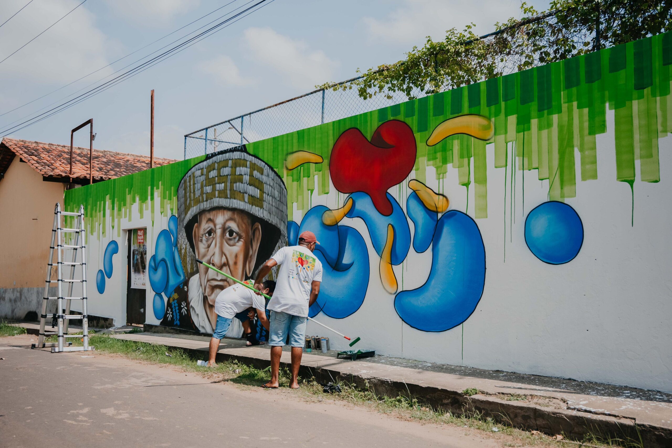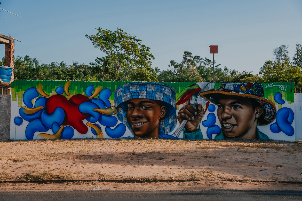 Já em São Luís, o sexto mural celebra o Boi de Miritiua ao destacar uma nova geração de cantadores que vem renovando a tradição. Kauan Santos, o “Novo Chiador”, e Alef Rodrigues representam o futuro da brincadeira, levando adiante uma herança que há décadas movimenta o bairro. Para Kauan, ser retratado em um mural tão jovem amplia sua responsabilidade com o Boi: