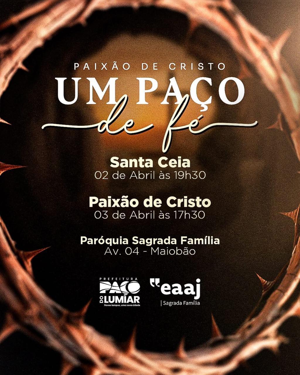 A fé, a cultura e a tradição se encontram mais uma vez em Paço do Lumiar. Com o apoio da Prefeitura, sob a gestão do prefeito Fred Campos, o município fortalece as manifestações religiosas e culturais com a realização da Via Sacra 2026, que este ano traz como tema “Paixão de Cristo: um Paço de Fé”. A organização do evento é da EAAJ da Paróquia Sagrada Família do Maiobão.