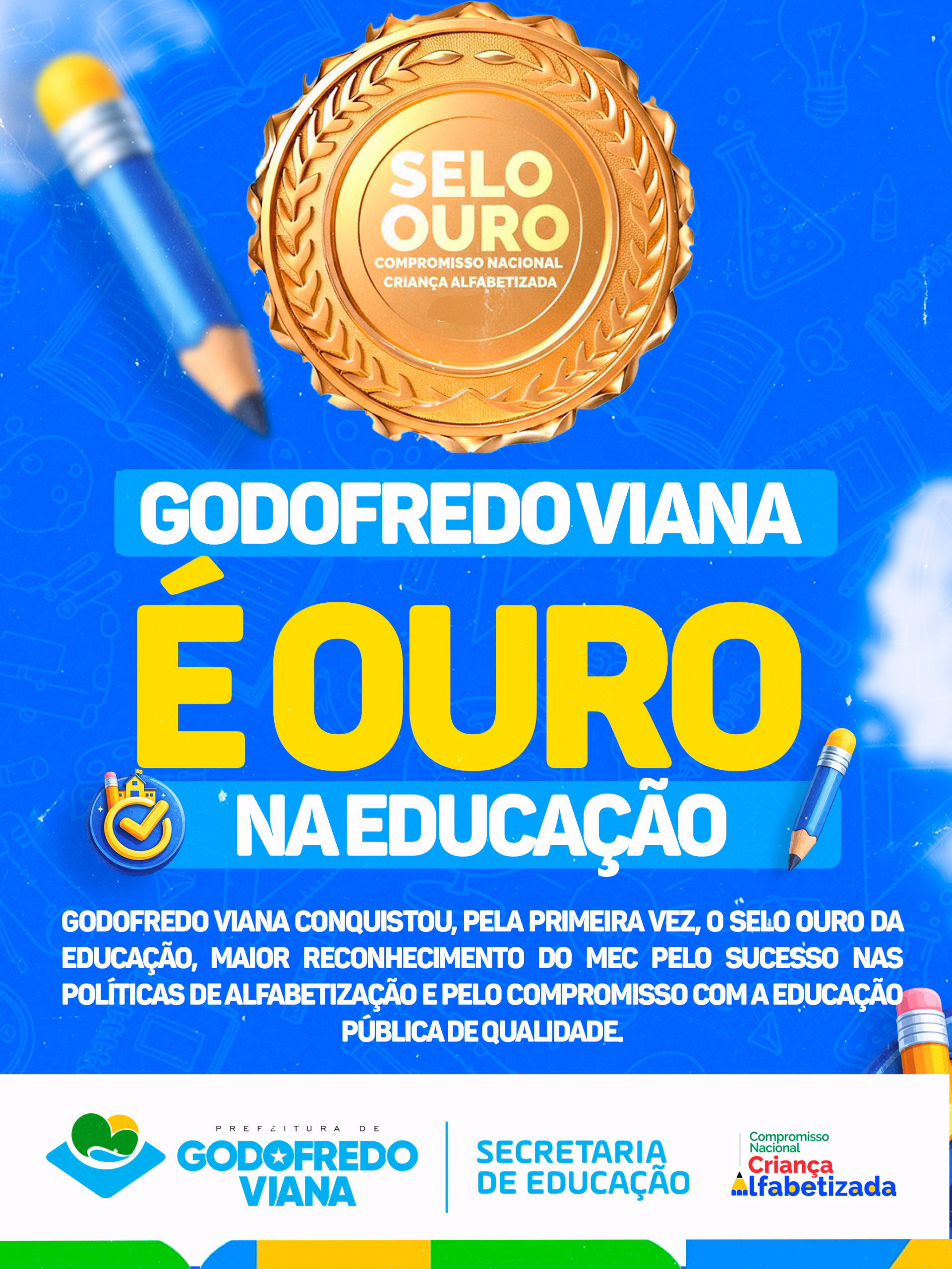 A educação do município de Godofredo Viana conquistou a categoria Ouro do Selo Nacional Compromisso com a Alfabetização 2025, uma iniciativa do Governo Federal, por meio do Ministério da Educação (MEC).