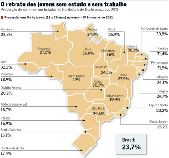De acordo com levantamento do Idados, o Maranhão lidera o péssimo ranking entre os Estados com os piores números de jovens sem trabalho e sem estudo.