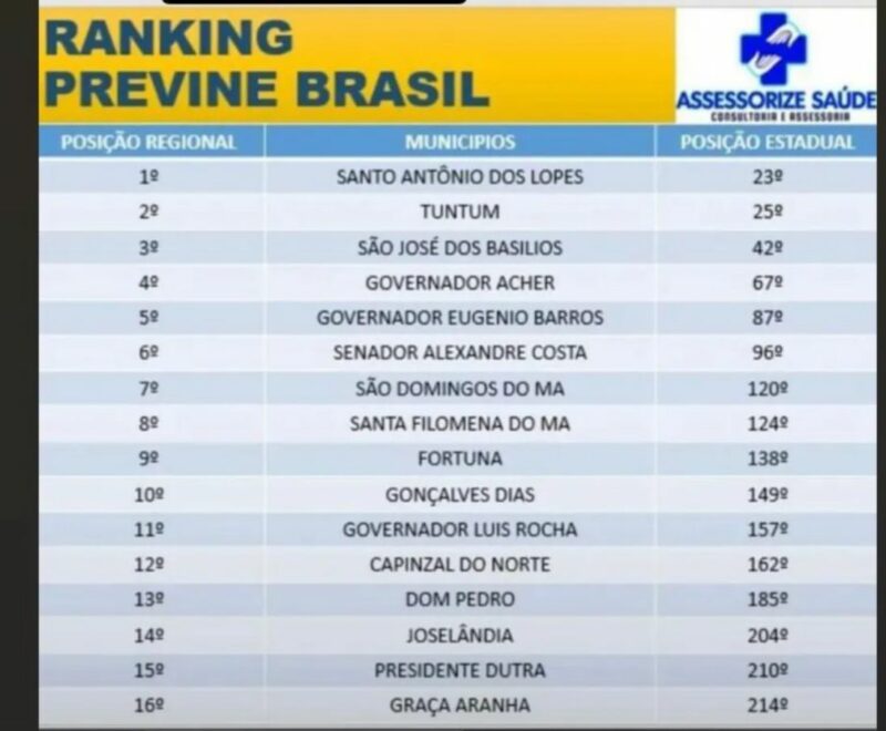 A boa colocação de Tuntum é fruto de um trabalho bem feito pela equipe liderada pela secretária Rosenilde Xavier e mais ainda pelos investimentos realizados com seriedade pelo jovem prefeito Fernando Pessoa.