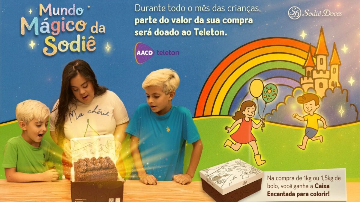 Nos dias 10, 11 e 12 de outubro, a cada compra de um bolo de 1 kg da Sodiê Doces, além da caixa temática, as crianças ganham um kit de canetinhas para colorir, permitindo personalizar ainda mais a experiência. A campanha também envolve tecnologia, com versões digitais das criações de Joaquim, filho de Diego Rabaneda e neto de Cleusa Maria da Silva, fundadora da marca, e de Sofia, sua filha, ganhando vida de forma interativa.
